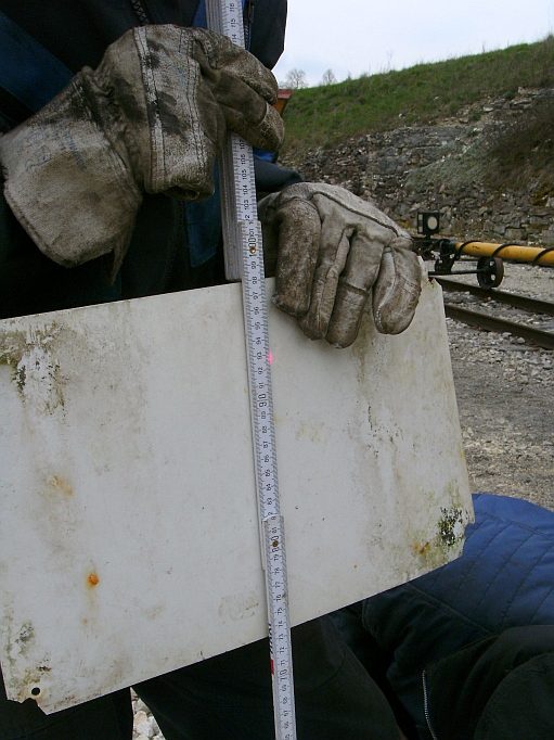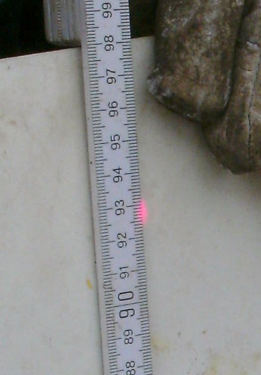 Um den Laserpunkt zu finden ist eine Kunsstofftafel recht nützlich,